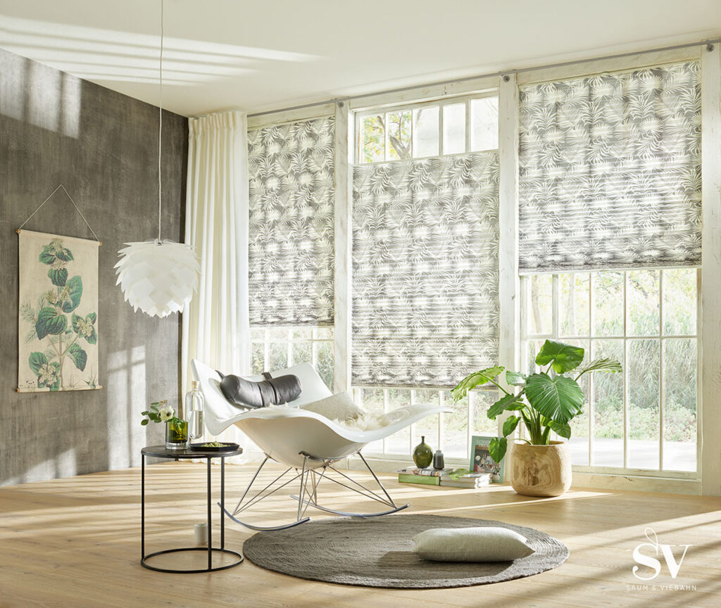 Flächenvorhänge sind die perfekte Wahl, um Muster und Designs in ihrer vollen Pracht zu präsentieren. Mit ihrer glatten und geradlinigen Erscheinung bedecken sie das Fenster und lassen den Stoff, aus dem sie gefertigt sind, perfekt zur Geltung kommen. Jedes Detail wird sichtbar, und nichts verschwindet hinter einer Falte oder einem Raffhalter.